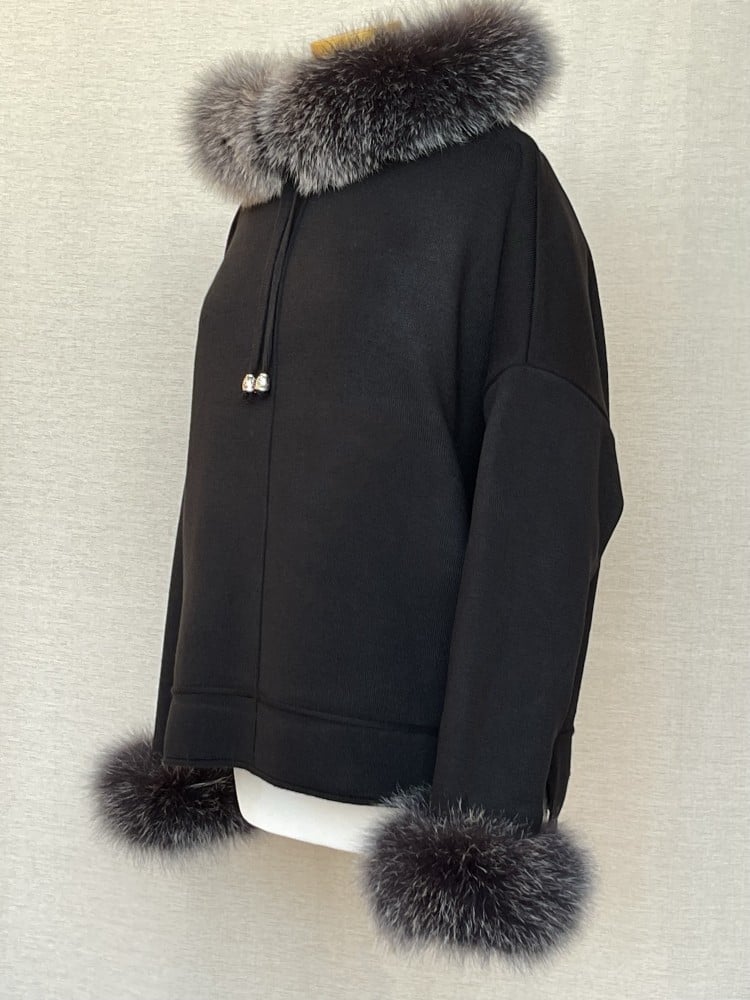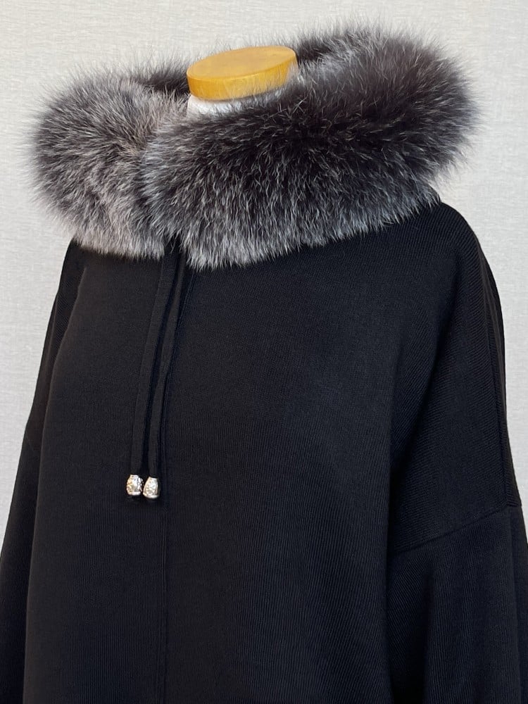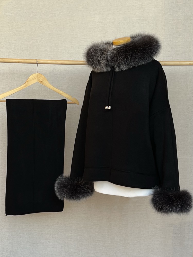 يتميز بلمسات من الفرو الطبيعي الفاخر على الأكمام والياقة والحواف، مما يمنحه مظهراً جذاباً وأنيقاً ✨
